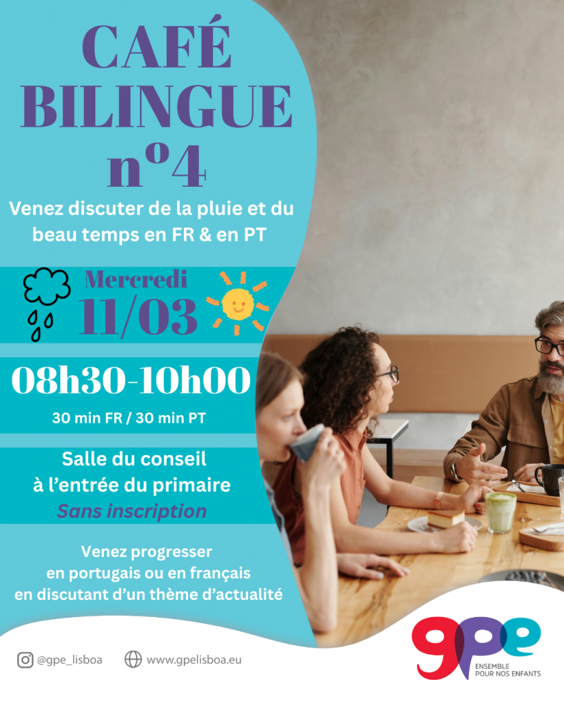 1- Café Bilingue GPE Français/ Portugais nº4 – Mercredi 11 mars à 08h30